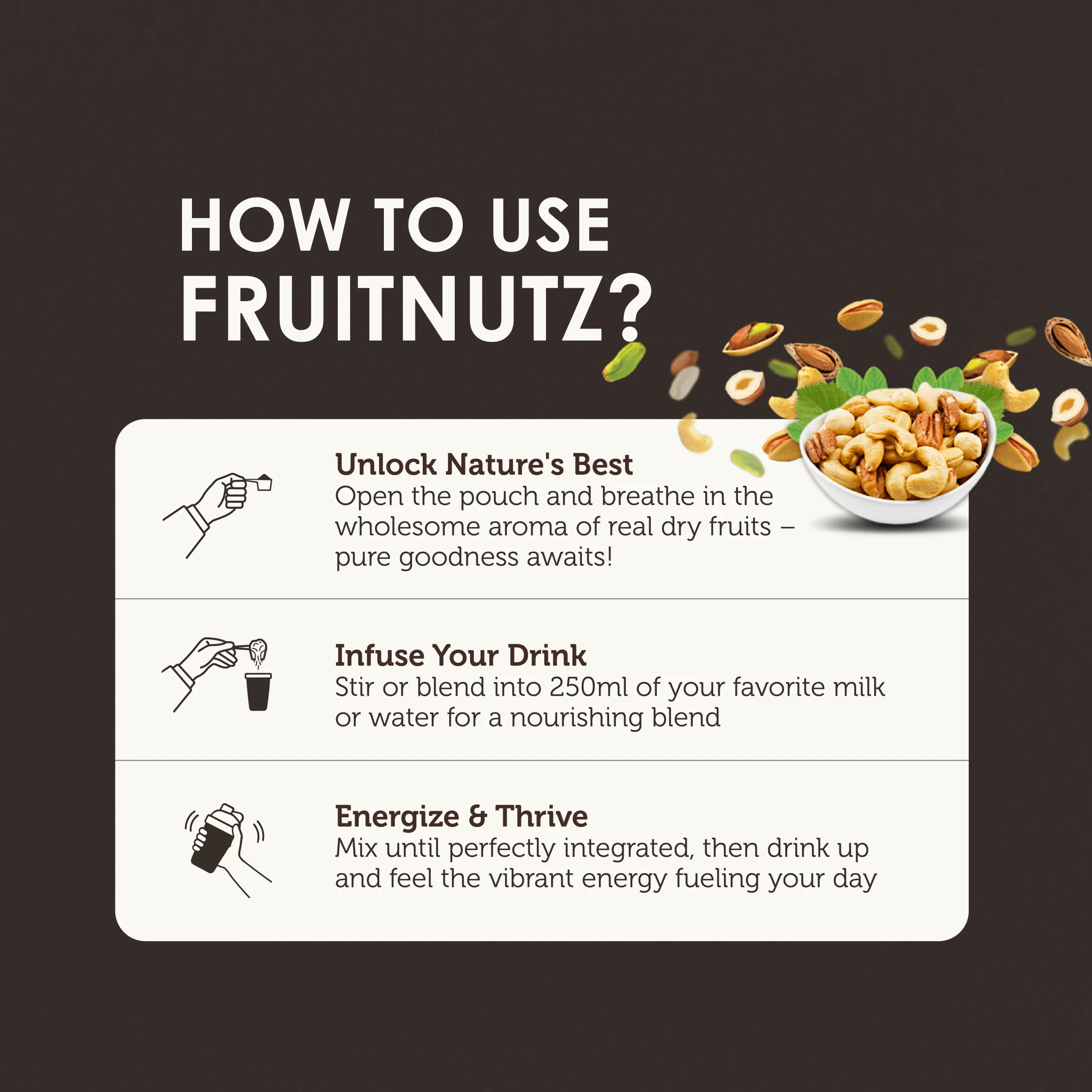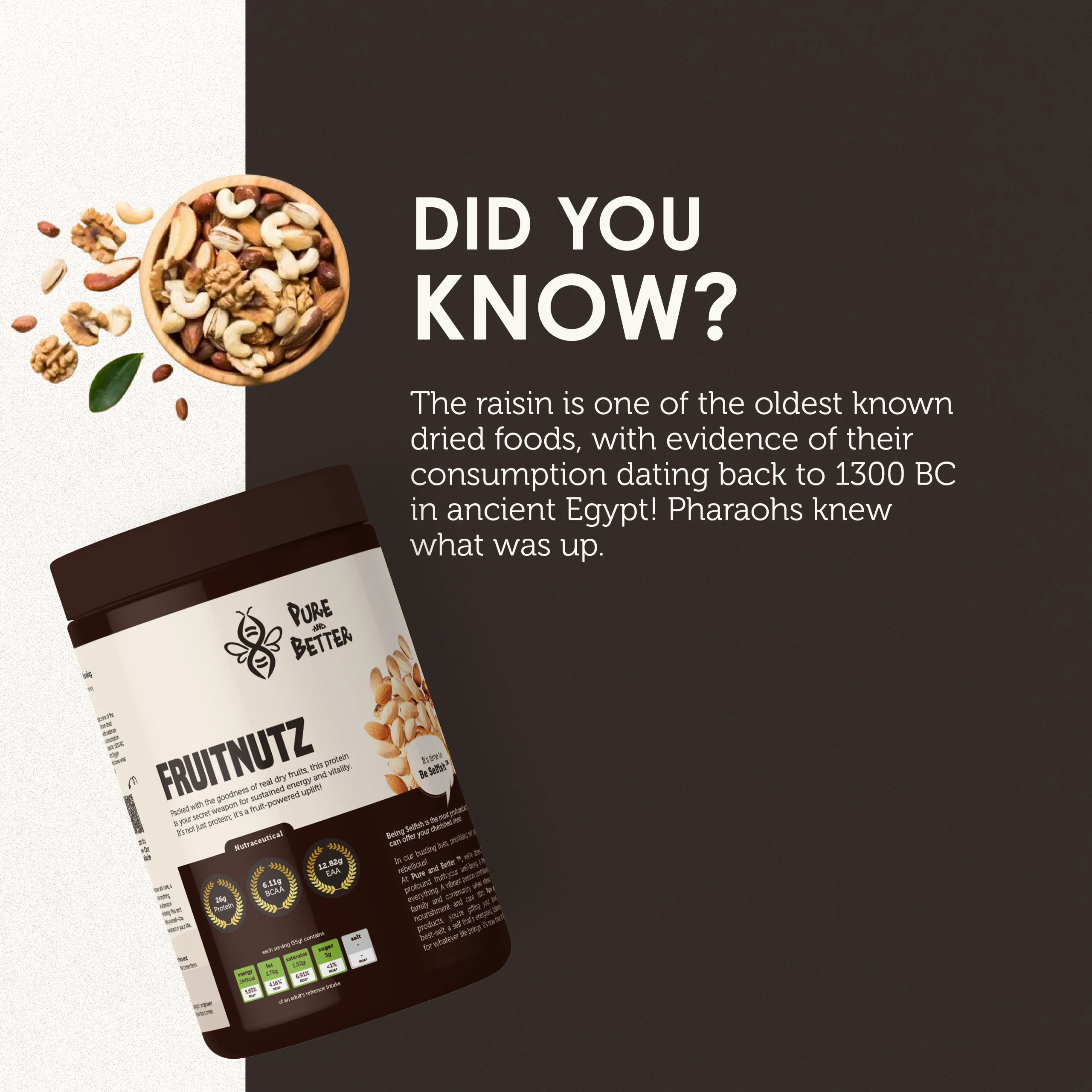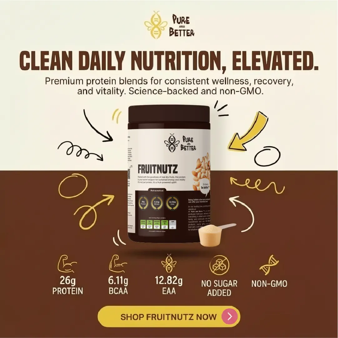 Your Daily Dose of Deliciousness. Packed with the goodness of real dry fruits, this protein is your secret weapon for sustained energy and vitality. It’s not just protein; it’s a fruit-powered uplift!