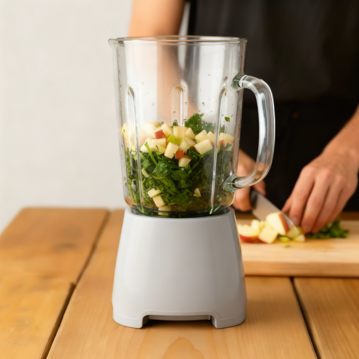 Rinse the spinach and chop the apple into smaller pieces for easier blending.